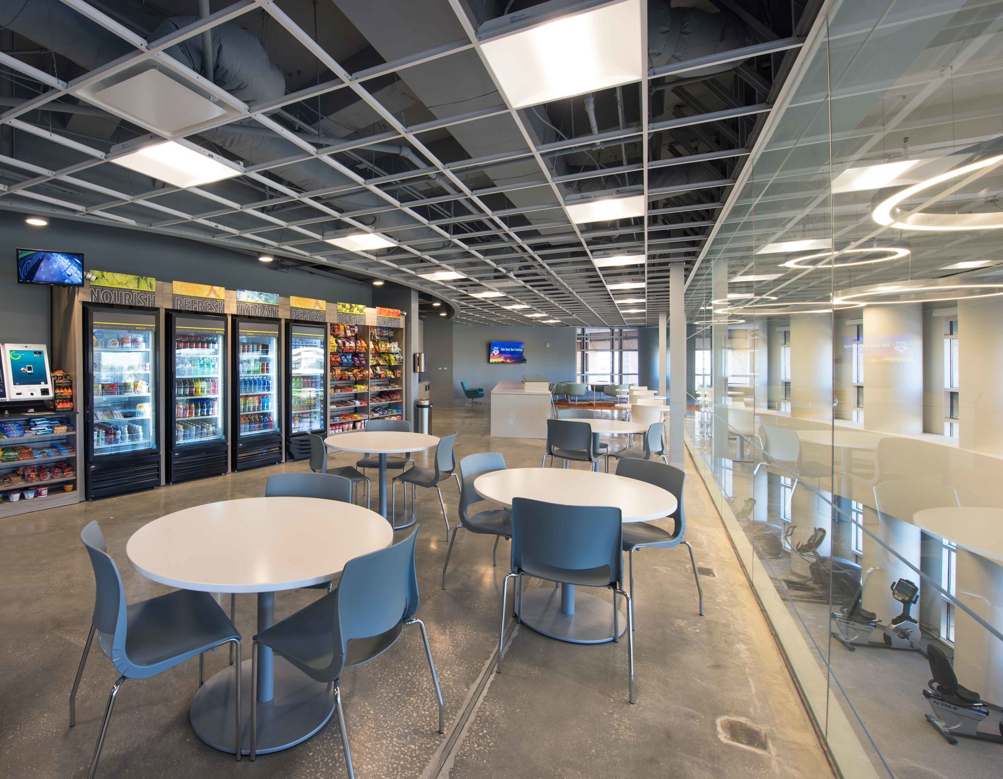 A thoughtfully designed tenant lounge offers space for informal meetings, quick breaks, and daily convenience with grab-and-go options.